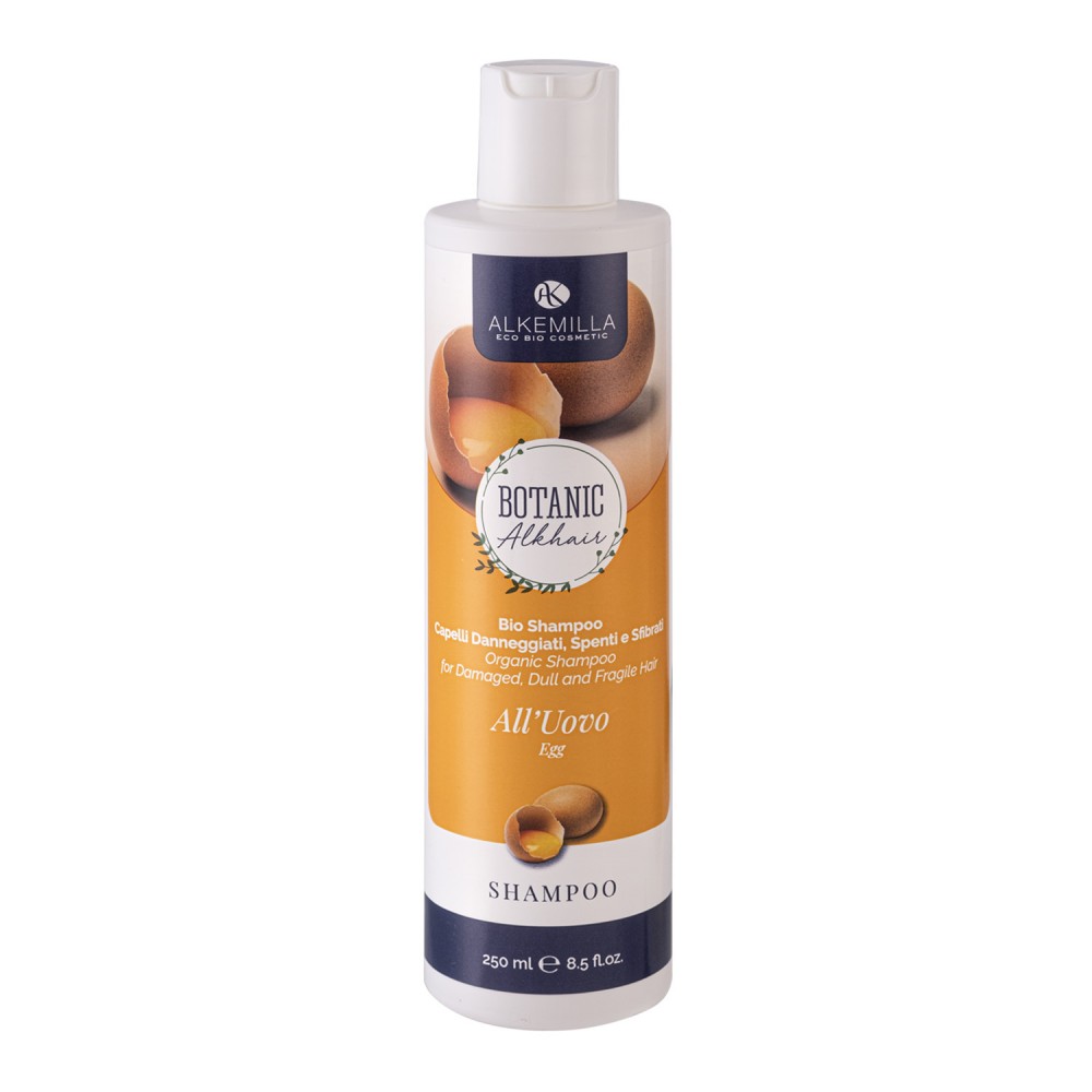 Lo shampoo all’Uovo Alkemilla è stato formulato per ridare morbidezza, lucentezza e volume ai capelli secchi e sfibrati. La struttura del capello secco viene nutrita e idratata in profondità, donando nuovo splendore a capelli opachi e fragili. La formulazione di questo shampoo si avvale delle proteine dell’uovo ottime per la riparazione dei tessuti e sono una ricca fonte di luteina, inoltre l’albume è anche ricco di vitamine appartenenti al gruppo B, enzimi e selenio.