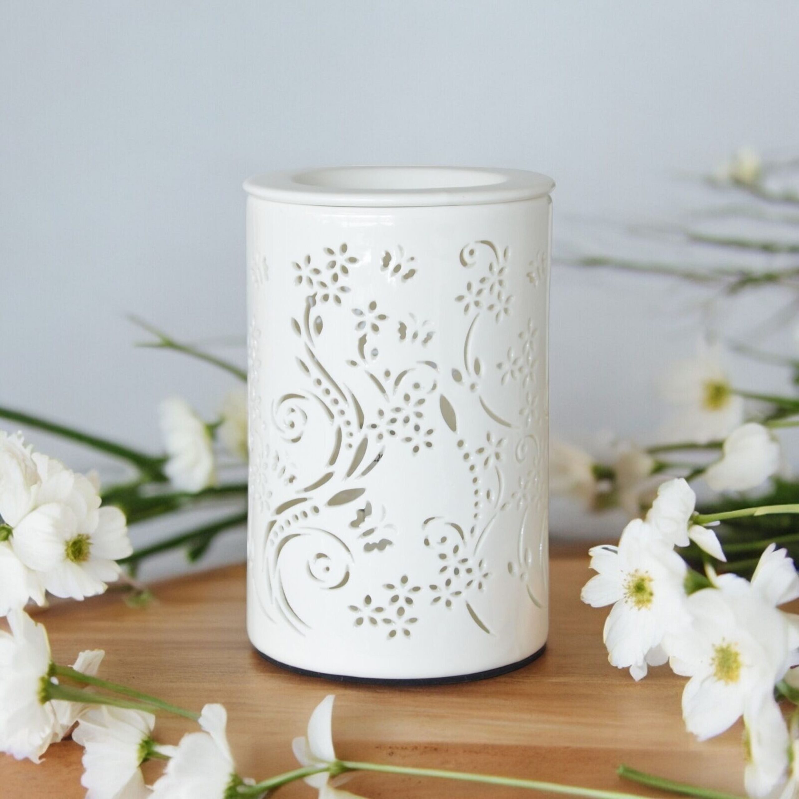 Il Calorya è un diffusore elettrico a calore delicato, realizzato in ceramica traforata, che unisce funzionalità e design. È perfetto per oli essenziali, fragranze per ambienti e cera profumata, diffondendo un’aroma avvolgente e una calda luce decorativa.