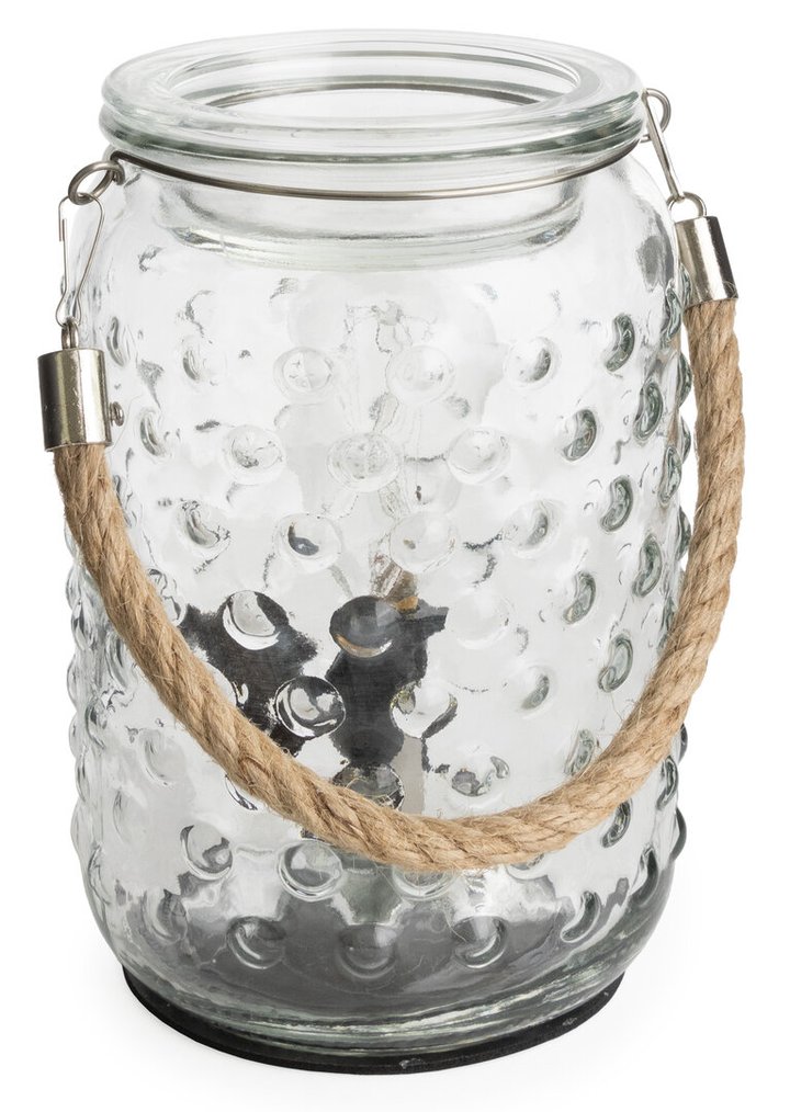 Il vetro trasparente con la sua superficie strutturata e la maniglia in corda aggiungono un tocco di stile country a qualsiasi stanza.